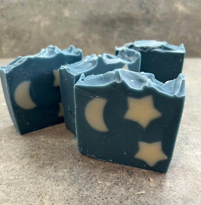 Ingredients: Goat's milk, saponified oils: olive, coconut, castor and shea butter. Scented with a blend of lavender and vetifer essential oils to induce relaxation and calm. Great for bath time!